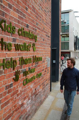 Uma das obras de Anna Garforth tira partido de do graffiti, porém sob um olhar ecológico. A artista desenvolveu uma técnica que utiliza plantas para escrever em muros. As mensagens são uma chamada para as pessoas desenvolverem consciência ecológica e social. Bonito e com conteúdo.